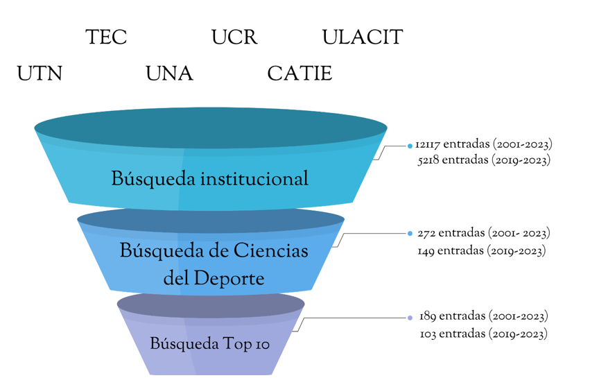 La búsqueda de información fue llevada a cabo el 18 de abril del 2023, usando la plataforma de búsqueda avanzada Web of Science (Clarivate). La búsqueda inicial fue realizada por instituciones en Costa Rica incluidas en esta plataforma digital, por ejemplo, Universidad de Costa Rica (UCR), Universidad Nacional (UNA), Centro Agronómico Tropical de Investigación y Enseñanza (CATIE), Universidad Latinoamericana de Ciencia y Tecnología (ULACIT), Universidad Estatal a Distancia (UNED), Universidad Técnica Nacional (UTN), Tecnológico de Costa Rica (TEC).