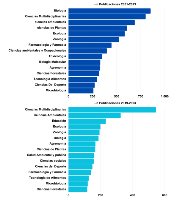 En este sentido, personal investigador costarricense en CMH ha participado en materiales publicados de una variedad disciplinaria como la nutrición, salud pública ambiental y ocupacional, ciencias sociales, psicología, educación, fisiología y otros (ver Figura 2). Este tipo de trabajo inter y multidisciplinario es un indicativo de que la calidad y el impacto de las publicaciones ha incrementado.