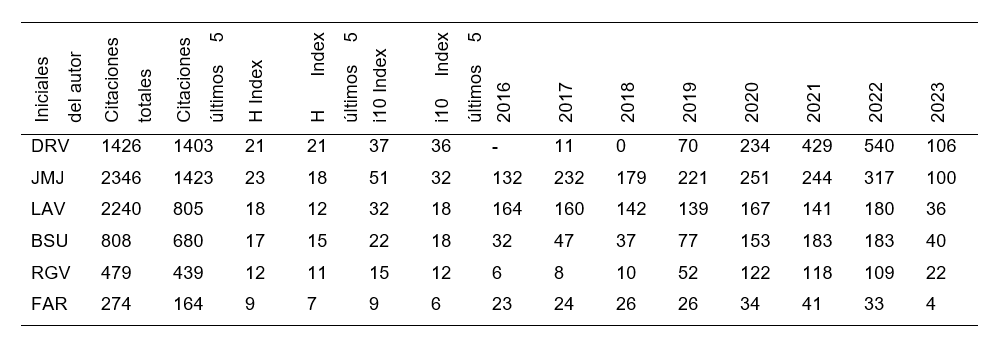 El análisis de citación (Teixeira da Silva, 2021) H-index y 10i-index fue realizado al seleccionar el top 5 de personas investigadoras acorde a la información de Web of Science y, luego, extrayendo la información de Google Scholar. Cuando fue necesario, toda la información relacionada a autores que no pertenecían a las instituciones de educación superior costarricenses fue eliminada. Se evitaron todos los nombres de las personas investigadoras y las iniciales se utilizaron para evitar cualquier ranking innecesario, debido a que este no es el objetivo del manuscrito.
