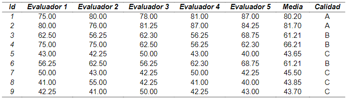 Finalmente, tras la selección de cinco evaluadores, se llevó a cabo un proceso de formación y familiarización con el instrumento a emplear con el objetivo de aumentar la fiabilidad en las puntuaciones otorgadas y reducir el sesgo en la evaluación. Para ello, se desarrolló un proceso de familiarización y entrenamiento conformado por cuatro etapas: 1) Etapa preparatoria; 2) Etapa de selección de los codificadores, 3) Etapa de formación de los observadores y 4) Etapa de confiabilidad (Gamonales et al., 2018a). Tras la evaluación y clasificación de cada uno de los manuscritos, se les otorgó una calidad metodológica tomando como referencia la clasificación realizada por Sarmento et al. (2018):