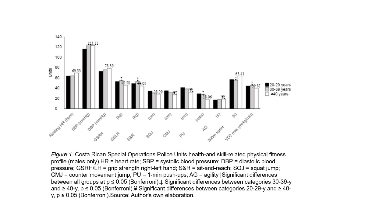 Therefore, police agencies must be able to determine how officers’ body composition and other components differ between their SOP units according to age (Kukić et al., 2020). It has been established that police officers of SOP units must have a high level of physical fitness (i.e., above average) for general police service (Zwingmann et al., 2021), but this could not be true in Costa Rica. Therefore, the purpose of this study was two-fold: a) to provide a detailed health-and skill-related fitness profile of a cohort of Costa Rican SOP units, and b) to compare selected physical measures by age groups.
