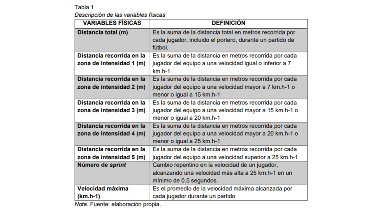 La mayor parte del trabajo de investigación se ha centrado en las variables físicas durante los partidos de fútbol de los clubes, principalmente en la Premier League inglesa (Bradley et al., 2009; Di Salvo et al. 2009), la Serie A italiana (Mohr et al., 2003) y la Liga española (Castellano et al., 2011). Estos estudios demostraron que los jugadores de fútbol corren de 10 a 13 km por partido. Entre el 10 % y el 15 % de esta distancia recorrida se realiza a una velocidad superior a 19 km.h-1. Estas actividades de alta intensidad ocurren principalmente cuando el equipo está en posesión del balón (Bradley et al., 2009; Di Salvo et al., 2009, 2010; Jones y Vanhatalo, 2017).