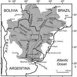 Draining approximately 17 percent of the surface area of the South American continent,-comprising almost all the southern part of Brazil, the south-eastern part of Bolivia, a large part of Uruguay, the whole of Paraguay and an extensive part of northern Argentina- into the South-western Atlantic Ocean, the la Plata River system (Fig. 11) is one of the most important river basins of the world.