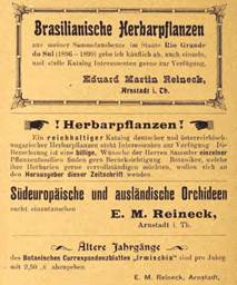 Eduard Reineck returned to Germany with his plant collections in 1899. These constituted the core of his commercial activities, which he began in 1901 and continued over the next 25 years. The years spent in Brazil gave Reineck a leading position among his contemporaries and in 1902 he was named editor of the Deutsche Botanische Monatsschrift, a position he kept until 1912. Reineck used this journal, as well as the Allgemeine Botanische Monatsschrift to advertise his collections of herbarium specimens (Fig. 31). The sale of these specimens would be Reineck’s main source of income for the rest of his life.