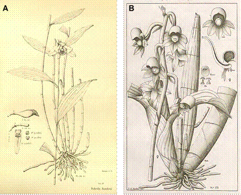 Hoehne was chosen as the botanist of these expeditions (during the second he had the company of his brothers-in-law Hermano and Geraldo Kuhlman) and later made significant contributions to the expeditions’ reports (published between 1910 and 1923), detailing their botanical findings. In some of these reports (Hoehne 1914, 1916, 1916a) he described and illustrated a large number of orchid species. Among them, he dedicated to Rondon and Roosevelt Sobralia rondonii and Catasetum rooseveltianum respectively (Fig. 43).