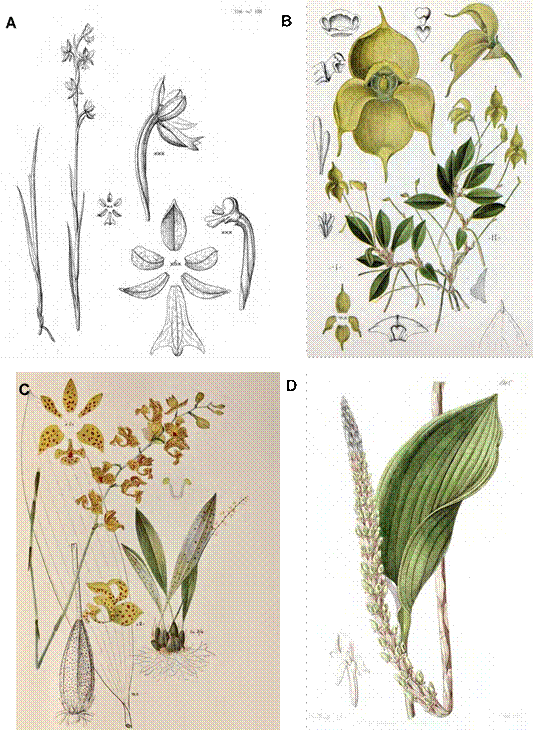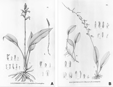 Burger’s new orchids were much more numerous: Cleistes australis (Burger XXIV), Pelexia burgeri (Aquino XXX), Pelexia gracilis (Burger XIV), Stelis aquinoana (Burger XXXI), Octomeria unguiculata (Burger XXIX), Epidendrum burgeri (Burger XVI, XVII), Promenaea riograndensis (Burger XXXII), Phymatidium aquinoi (Burger XIX), Ornithocephalus brachystachyus (Burger XVI), and Zygostates aquinoi (Burger XX),