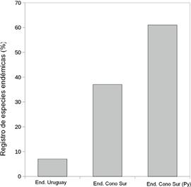 Esta diferencia en CuSeGo, principalmente en los departamentos CER, RIV y TAC, y en GrLaMe en MAL, ROC y LAV coincide con la reportado en otros grupos biológicos (Grela 2004, Perez-Quesada & Brazeiro 2013, Mai 2014). Además, CuSeGo es la segunda con mayor riqueza de especies leñosas y epifitas del país (Mai 2014, Brazeiro et al. 2015a) también concuerda con el núcleo norte de flora leñosa (Grela 2004). En GrLaMe, cabe resaltar que la mayoría de las especies encontradas principalmente en MAL son de amplia distribución.