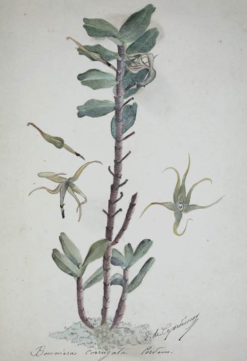 Cordemoy (1899) described and illustrated Bonniera corrugata from the ‘Sommet de la Nouvelle Grande-Montée de la Plaine des Cafres’ in Réunion but he did not indicate a specimen on which the description was based. No associated material has been found in the Cordemoy herbarium in MARS, P or in REU. The description is accompanied by a drawing, based on a watercolour by Eudoxie de Cordemoy (MAU/MSIRI), her illustration is therefore chosen as the lectotype (Fig. 4). It is endemic to Réunion.