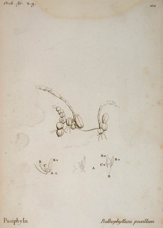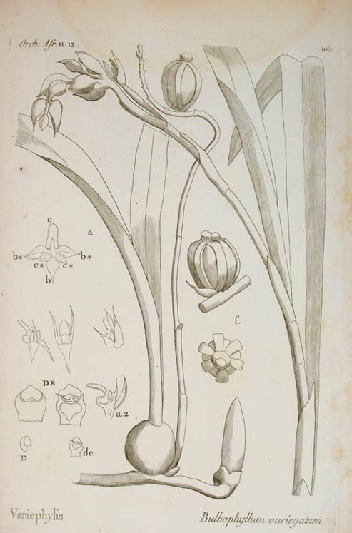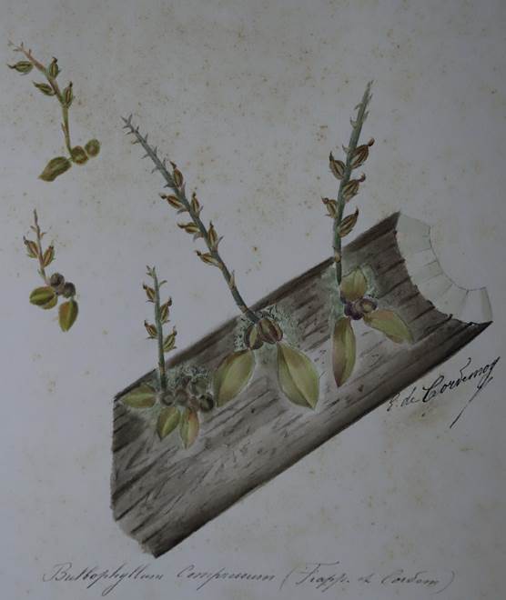 This widespread species (tropical Africa and W. Pacific & Australia, Madagascar, the Comoros and the Mascarenes) was described by Thouars in 1822 from Réunion but little associated herbarium material remains, none was found in P but a few flowers were located in BM. The illustrations in Thouars’, Hist. Orchid.: t. 43-44 (1822) are also clear.