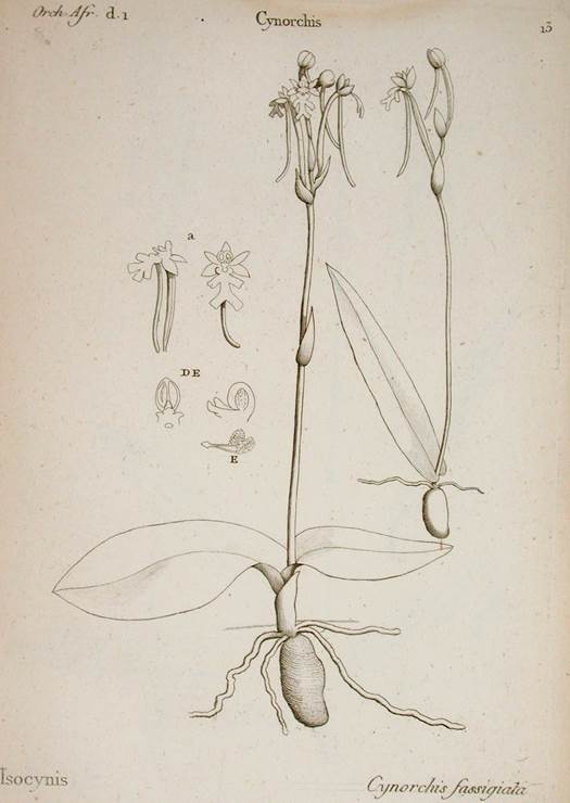 Thouars’s type of Habenaria sigillum in P is in fruit and has no other indication of its origin. His two plates (Hist. Orchid.: tt. 19 & 20) are more reliable, although the lower lobes of petals were confused for the basal lobes of the lip, making it appear 5-lobed, this was repeated in the description by Moore in Baker (1877: 333). The error was also noted by Kraenzlin (1892: 82) and Frappier (1895: 258).