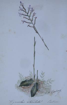 Cordemoy (1895: 256) described this species but failed to mention any collections. Herbarium specimens labelled as this species are found in Cordemoy’s herbarium in MARS. One lacks flowers and the other two are in poor condition and may not be this species and they post-date its publication. Because of the lack of reliable herbarium material, the contemporary watercolour painting by Eudoxie de Cordemoy in MAU/ MSIRI has been chosen as the lectotype (Fig. 78).