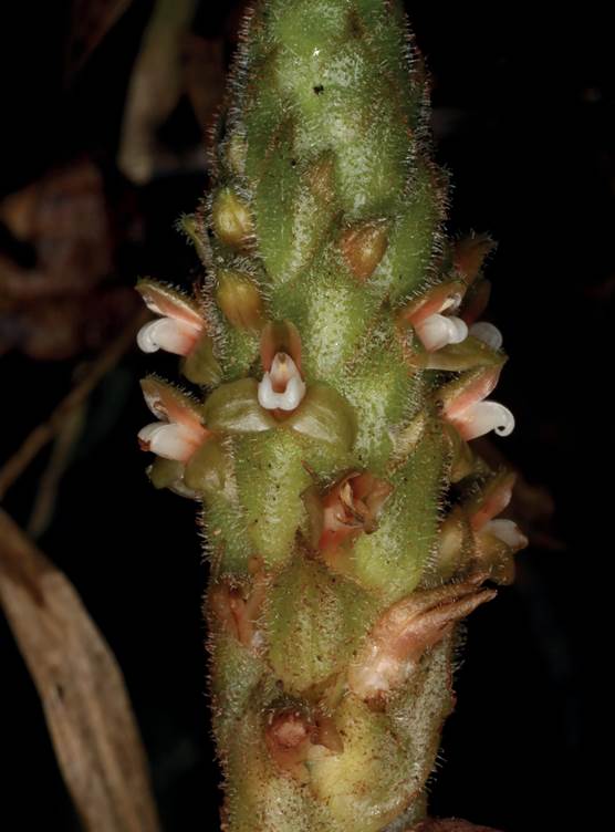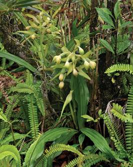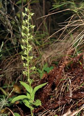 The only species of the genus found outside of Madagascar is unusual in that its yellowish flowers never fully open. Moreover, its floral bracts are exceptionally long, the basal ones up to 12 cm long but progressively shorter above. It is the only species of Gastrorchis in the Mascarenes, being found on both Réunion and Mauritius. Moore in Baker (1877: 349) recognised two variants of the species with var. longibracteata having longer bracts but this was based on a misunderstanding of Thouars’s illustration (Fig. 69) and the herbarium material available to him. Bernet (2011: 12) treated it as subspecies of the Madagascan Phaius luteus but it is distinct in being a much taller plant, with floral bracts, much longer than the flowers, and in its self-pollinating flowers with an entire, yellow-green lip with dark purple markings and with three hairy longitudinal ridges running from the callus to the apex.