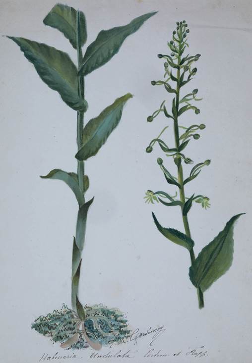 Platanthera richardi was first listed by Frappier in 1880 and then mentioned without description by Cordemoy in 1895 as being in the ‘Museum Herbarium’ but without further detail. Moore in Balfour (1876b) also listed it from Réunion from the Richard Herbarium. A herbarium sheet in P (Richard 496, P00735317) labelled as ‘Habenaria Richardiana sp. nova.’, but relabelled H. sigillum, has a habit and flowers that correspond well with H. undulata. Two herbarium sheets, annotated as Habenaria richardiana, can be found in the Lindley herbarium at Kew; one as ‘H. richardiana A. R. ms., Bourbon, Richard’, the other from Balfour, presented in 1875; both are Habenaria undulata. All these may well be connected to the name Habenaria richardiana but without certainty. It therefore remains as a nomen nudum attributable to H. undulata.
