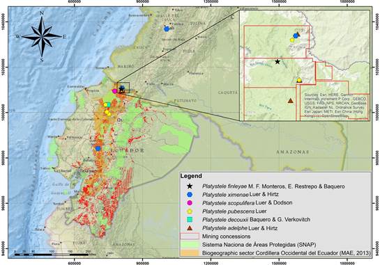 Even though the Cordillera Occidental de Ecuador is an important biogeographic region for Ecuadorian biodiversity, it is currently strongly threatened by mining concessions, the lack of government-owned protected areas, and the illegal extraction of species. These threats put the conservation status of these species at risk (Monteros et al. 2021, Yánez-Muñoz et al. 2021). Therefore, it is necessary to evaluate their conservation status according to IUCN criteria, to focus on effective conservation actions (Fig. 6).