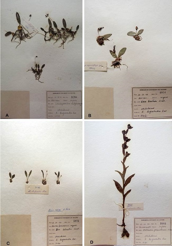 Addition of orchids to BRTTR.- During the present study several orchids were reported as new additions to BRTTR. As many as 26 species were added to the orchid flora of BRTTR in the present documentation, including 15 endemic orchids. It is interesting to note that Habenaria sahyadrica, was described from Western Ghats of Kerala in 2016. The same was also collected in BRTTR in 2016 showing its extended distribution to Karnataka. Similarly, a climbing leafless orchid Vanilla walkerae was reported from the dry scrub thickets of BRTTR after a lapse of 110 years from Karnataka. These reports also emphasize the importance of intensive field explorations and taxonomic studies. Following are the new orchid records for BRTTR. Coelogyne breviscapa Lindl., Dendrobium aqueum Lindl., Dendrobium nodosum Dalzell, Eria exilis Hook.f., Eria microchilos (Dalzell) Lindl., Eria mysorensis Lindl., Eria pseudoclavicaulis Blatt., Eria reticosa Wight, Eulophia graminea Lindl., Gastrochilus flabelliformis (Blatt. & McCann) C.J.Saldanha, Habenaria brachyphylla (Lindl.) Aitch., Habenaria crinifera Lindl., Habenaria elwesii Hook.f., Habenaria furcifera Lindl., Habenaria gibsonii Hook.f., Habenaria longicornu Lindl., Habenaria marginata Colebr., Habenaria multicaudata Sedgw., Habenaria roxburghii Nicolson, Habenaria sahyadrica K.M.P.Kumar, Nirmesh, V.B.Sreek. & Kumar, Luisia trichorhiza (Hook.) Blume, Oberonia brachystachys Lindl., Oberonia chandrasekharanii V.J.Nair, V.S.Ramach. & R.Ansari, Oberonia ensiformis (Sm.) Lindl., Peristylus plantagineus (Lindl.) Lindl., and Vanilla walkerae Wight.