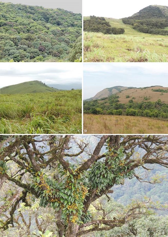 Orchids and their habitat within BRTTR.- In BRTTR, the orchids are found in different habitats ranging from dry scrub forests at lower elevations (600 m) up to Shola grasslands at higher elevation (1825 m). An analysis based on the habitat preference shows that moist deciduous, semievergreen and evergreen forests provide suitable habitats for several terrestrial and epiphytic orchid assemblages due to the presence of moisture and humidity (Fig. 5). Table 1 provides the diversity of orchids across various habitat types.