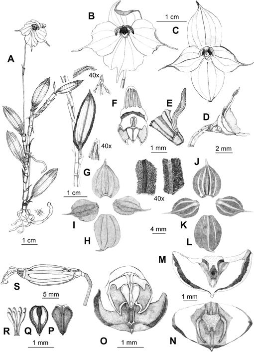 To aid in the identification process, a species key for the genus, as proposed by Luer (1995), with additional insights from Becerra (2005), Becerra & Catchpole (2007), Luer (2010), Luer & Thoerle (2012), Bogarín et al. (2015), Bogarín & Karremans (2016), Jiménez (2015), and Valenzuela Gamarra (2017), was employed. For a detailed examination of the vegetative parts, an Olympus Stereo Zoom SZ4045 stereoscope with a magnification range from 6.7 to 40x, a Leica DM 300 optical microscope (150x), and a Celestron 44302B Digital Microscope (250x) were used. Detailed drawings were created for each observed detail, facilitating comparisons and discussions. Finally, the geographic coordinates of the discovery site were recorded using a GPS 64 CSX to understand the species’ distribution better.