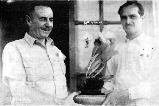 Lankester, C. H. (1945c). Cattleya dowiana (Guaria de Turrialba). Revista del Instituto de Defensa del Café de Costa Rica, 15(131), 538−541. [En este artículo Lankester brinda abundante información sobre esta especie de orquídea. Lankester y Claudio Escoto aparecen en una fotografía en la portada (reproducida aquí en la Fig. 2) con la siguiente leyenda: “Los caballeros don Carlos H. Lankester y Lic. don Claudio Escoto León asistieron en calidad de Designados de Costa Rica al Congreso de Orquideología de México, en el cual presentaron esta hermosa “Guaria de Turrialba”, que tuvieron después la oportunidad de obsequiar a la Primera Dama de la República azteca.”]