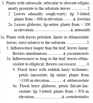 Mexican species of Lepanthes affinity belong to the following six genera, they can be identified with the following key.