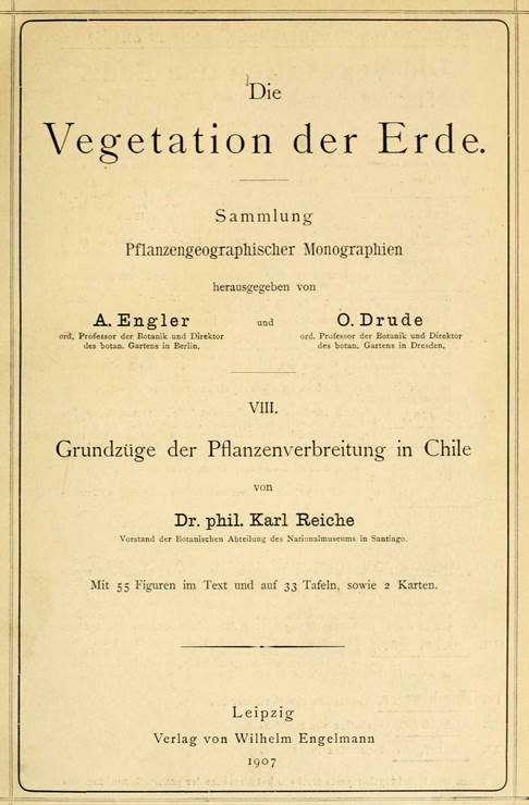 When Reiche was already familiar with the Chilean flora, he was asked to author a book about Chilean plant geography for Drude and Engler’s series Die Vegetation der Erde (= The vegetation of the earth).
