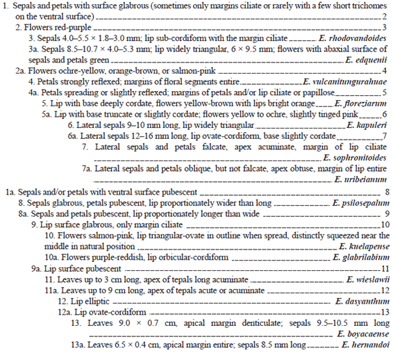 Key to the species of the Takulumena Group of Epidendrum