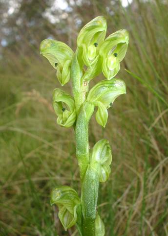 Notes: Hymenochilus muticus is commonest in inland localities and is generally uncommon to rare in coastal and near-coastal sites. The type collection was made from the raceground at Port Jackson (possibly the modern suburb of Randwick) which is not far from the coast. The type specimens are not as robust as plants from inland areas, but they are in the early stage of flowering and features of the labellum are consistent with those in other parts of New South Wales.