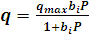 [2]donde qmax es la cantidad adsorbida a presión infinita o la cantidad adsorbida en la saturación (mmolg-1)