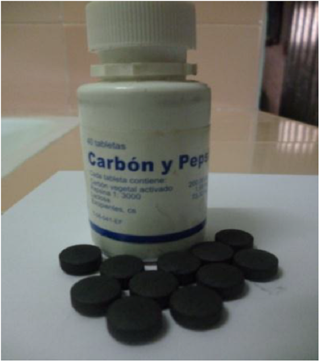 La producción de tabletas de carbón y pepsina en Cuba asciende a 43 millones u/año. La aplicación terapéutica de este medicamento es aliviar desarreglos gastrointestinales que son múltiples y generados por disímiles causas, entre las que podemos citar: dispepsia, flatulencias, acidez, diarrea, disentería y distensión abdominal. La acción principal ocurre durante la adsorción de gases en exceso que se producen en el estómago y los intestinos. El precio de una de sus materias primas principales, carbón activado (CA), en el mercado internacional oscila entre 6 500-8 000 USD/t. El carbón activado, Norit E Supra (CA/NE), es un material de importación que la industria farmacéutica cubana viene empleando desde hace más de diez años.