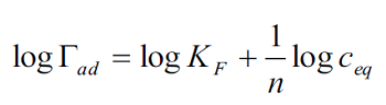 (2)where: Γ is the amount adsorbed c is the equilibrium concentration K and are Freundlich constants which are related to adsorption capacity and intensity of adsorption. Plot of logΓ logc gives a straight line of slope 1/ and intercept logK.