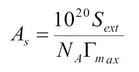 It is important to mention that the dimensions of the RB molecule are bigger than the largest clinoptilolite channel (channel A: 7,5 Å x 3,1 Å). Therefore, the molecule can’t enter the zeolite channel system and the adsorption is essentially limited to the external solid surface. From the values of the maximum sorption capacity (Γmax) and the external surface area per gram of adsorbent (Sext = 20 m2/g) the area occupied by an adsorbed dye molecule (As) can be obtained by the following equation: