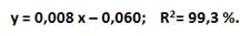 The quantification of carbohydrates was realized by the phenol-sulfuric method, according to the methodology described by Dubois.23 Two milliliter of the samples (1 mg/mL solution based on total solids) were mixed with 2 mL of 5 % phenol in test tubes and placed in a rack submerged in a cold water bath. Five milliliters of H2SO4 were added letting the tubes for 15 min to measure the absorbance at 490 nm in a UV/VIS spectrophotometer. Glucose (Riedel-de Haën, 99,5 % pure, Germany) was used for the calibration curve in concentrations from 10 to 200 μg/mL, generating the following equation: