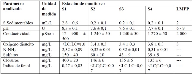 En la tabla 3 se comparan los valores medios obtenidos para los parámetros físico-químicos estudiados en las aguas residuales provenientes del colector general de la tenería, con los límites máximos permisibles establecidos en la Norma NC 27:2012.