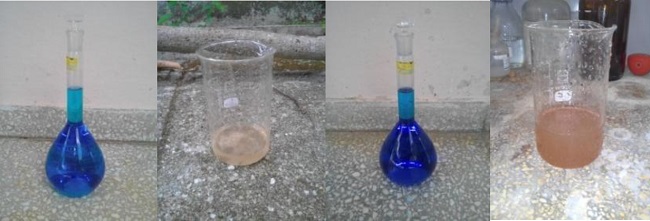 La curva patrón de azul de metileno se determinó en un intervalo de 1 a 13 mg L-1. Se pesaron 0,01 g de reactivo sólido azul de metileno y se diluyeron en 100 mL de agua destilada para obtener una disolución stock de concentración 100 ppm, de la cual se realizaron las diluciones con volúmenes desde 0,25 a 3,25 mL, enrazando hasta 25 mL con agua destilada.