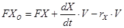 Esta ecuación es ajustada a un biorreactor discontinuo, donde FX0 = FX = 0, los volúmenes se mantienen constantes y considerando que no hay muerte celular, la ecuación de balance para el crecimiento microbiano será: