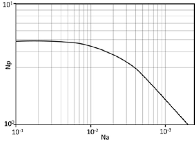 Para el cálculo de la potencia se emplea la relación entre el número de potencia (Np) y Na, se obtiene mediante la existencia de correlaciones empíricas para cada tipo de agitador (fig. 2).