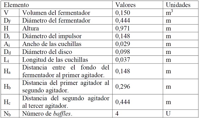 En la tabla 2 se muestran el dimensionamiento del biorreactor diseñado.