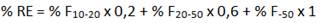 Determina-se sua composição granulométrica empregando-se as peneiras nº 10, 20 e 50, segundo a Associação Brasileira de Normas Técnicas - ABNT. Para os calcários, a partir dos resultados da composição granulométrica calcula-se a reatividade (RE) do produto pela expressão;
