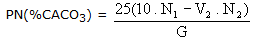 Procedimento - (a) Transferir uma alíquota de 50 ml do extrato para erlenmeyer de 250 ml, acrescentar 50 ml de água destilada e 3 gotas de solução de fenolftaleína a 0,5%; (b) Titular com solução de NaOH 0,1 N padronizada até o aparecimento de uma leve cor rosada. Anotar o volume gasto; (c) Calcular o PN do material, em % CaCO3 equivalente, pela expressão: