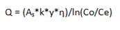 [1]donde: Área Superficial (As): 0,15 m2, calculada por las dimensiones del humedal experimental. Porosidad (η): 0,35 Según García y Corzo.10 Profundidad (y): 0,2 m Concentración de DQO afluente (Co): 165 mg/L