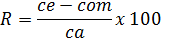 Para determinar la veracidad se realizó el ensayo de Recuperación (R) mediante el método de adición de estándar. A partir del patrón de fosfato de 50 mg/L se prepararon, por triplicado, muestras patrones que cubrieron el rango de concentraciones de la técnica analítica: 2,0; 10,0; 18,0 mg /L, debido a que la concentración de ortofosfato es muy variable. A cada una de ellas se le adicionó 5 mL de digestato y se procedió al desarrollo de color. Con los resultados se calculó el % R según la ecuación 2: