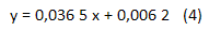 La ecuación de la recta de la curva de calibración se muestra en la ecuación 4. En la tabla 1, se indican los valores experimentales correspondientes al estudio de linealidad para la determinación del contenido de ortofosfatos. Tanto el coeficiente de correlación lineal (r) como el coeficiente de determinación (R2) son mayores que los criterios de aceptación correspondientes, por lo que se puede concluir que existe una correlación estadística entre las variables estudiadas. Se cumple la condición de proporcionalidad pues los límites de confianza del intercepto incluyen el cero, lo que indica que no se cometen errores de tipo sistemático en el método. La desviación estándar relativa a la pendiente también cumple con lo establecido en la literatura 17, indicando que las curvas de calibración analizadas en días diferentes no sufren cambios.