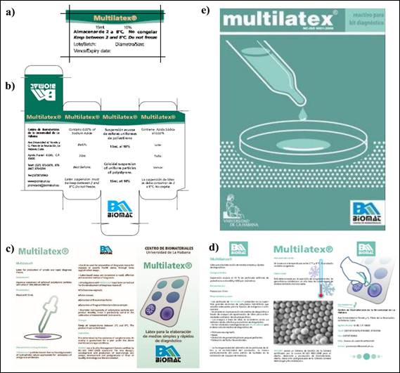 Multilatex® es el nombre bajo el que se comercializa el látex de poliestireno que se produce en BIOMAT. Desde principios de los años 90 se había establecido un protocolo para la síntesis de látex y se habían establecido metodologías para la caracterización y el control de la calidad del producto. Varias instituciones científicas cubanas, como la Empresa de Producción de Biológicos” Carlos J. Finlay”, el Centro Nacional de Investigaciones Científicas, el Centro Nacional de Sanidad Agropecuaria y laboratorios del Grupo Empresarial LABIOFAM S.A. avalaron su calidad para ser utilizado con fines diagnósticos. Se realizaron investigaciones para el acoplamiento de biomoléculas al látex con la finalidad de desarrollar reactivos para el diagnóstico de enfermedades, que fueron divulgadas en eventos científicos, tesis y publicaciones.13 Estos resultaron contribuyeron a obtener el Registro de la Marca Multilatex® en Cuba (No. 120609 en la clase 5 con vigencia hasta noviembre de 2023).
