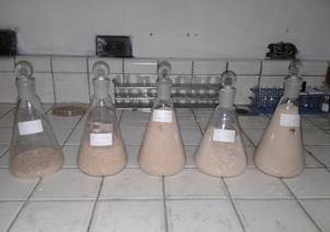 Fueron utilizadas disoluciones de NaOH y H3PO4 de 0,5 mol/L. El bagazo natural fue impregnado en cada una de ellas de forma aislada, por 24 h y luego son filtradas y secadas a 105oC en estufa (VENTICELL, España).6,13-14