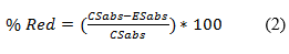 Where: CSabs = absorption of the control solution, and ESabs = absorption of the extract solution containing the radical DPPH.