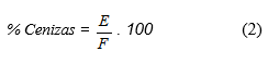 En un crisol tarado se pesa 0,5 g de la muestra seca, y se lleva a una mufla a 650°C durante 3h; luego se deja enfriar en desecadora, y se pesa hasta masa constante. Para el cálculo se utiliza la expresión (2).