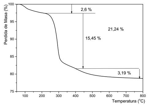 Los termogramas se obtuvieron en un equipo de la firma alemana NETZSCH, modelo STA 449 F3, utilizando crisoles de Al2O3 (tamaño estándar). Se realizaron a velocidad de calentamiento de 10 ºC/min en atmósfera de Argón, desde temperatura ambiente hasta 800 ºC.