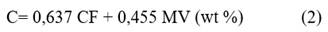 57,2 % ≤ MV ≤ 90,6 %; 4,7 % ≤ CF ≤ 38,4 %;