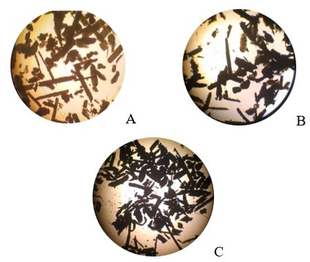 La figura 7 (A, B y C) muestra las imágenes obtenidas al visualizar las biomasas estudiadas utilizando un microscopio óptico.