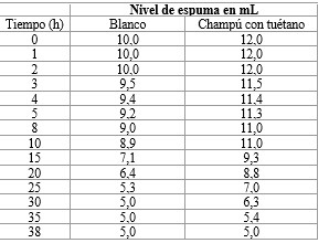 Otro parámetro evaluado fue la estabilidad en la formación de espuma. En la tabla 7 se presentan los resultados de la prueba.