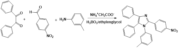 After benzoin oxidation, the synthesis of the 1,2,4,5-tetraaryl substituted imidazol was carried out, as experimental part describes (figure 3).